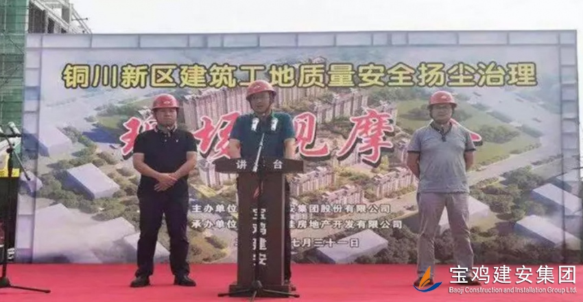 歷兵秣馬,十年磨劍,弘揚(yáng)工匠精神,展我建安雄姿。2019年7月31日,寶雞建安集團(tuán)第四項(xiàng)目部迎來了意義非凡的一天,“銅川市安全文明施工暨揚(yáng)塵治理現(xiàn)場觀摩會”在我司銅川新區(qū)雍照華庭項(xiàng)目隆重召開。