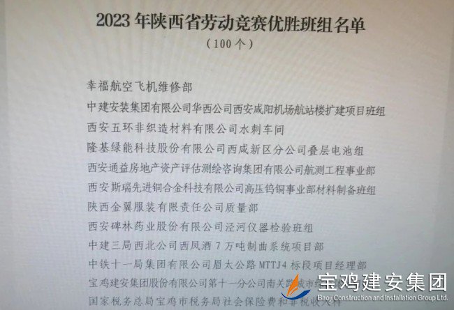 近日,陜西省勞動(dòng)競(jìng)賽委員會(huì)發(fā)出通知,在全省范圍內(nèi)通報(bào)嘉獎(jiǎng)獲得2023年度陜西省勞動(dòng)競(jìng)賽工作的先進(jìn)集體和優(yōu)秀個(gè)人,集團(tuán)公司工會(huì)上報(bào)、省市兩級(jí)工會(huì)聯(lián)合推薦的公司十一分公司南關(guān)路城市綜合體項(xiàng)目部榜上有名,獲得優(yōu)勝班組殊榮。