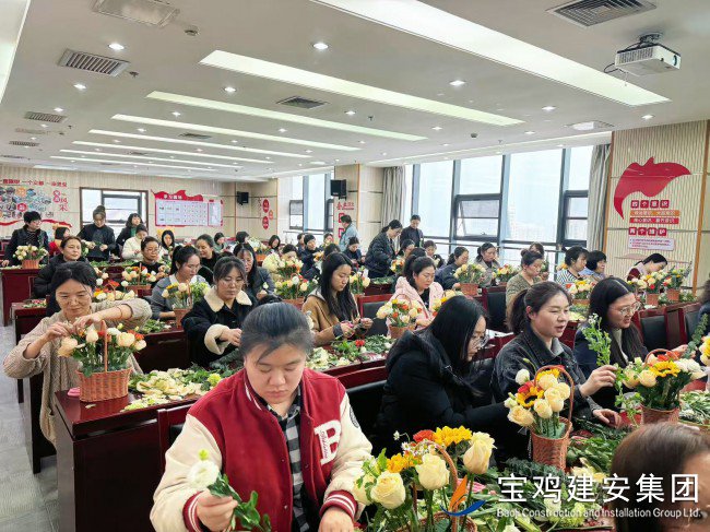 為慶祝第115個(gè)“三八”國際勞動?jì)D女節(jié),3月6日下午,公司黨委、工會和團(tuán)委聯(lián)合舉辦了“魅力巾幗 花漾生活”創(chuàng)意插花活動。 此次活動旨在提升女職工的幸福感,陶冶情操,展示公司女員工的精神風(fēng)貌,進(jìn)一步團(tuán)結(jié)和激勵廣大女員工以更高的熱情投入工作?;顒釉诠窘ò泊髲B22樓黨員活動室舉行,來自機(jī)關(guān)各部室和基層各單位的60多名女職工踴躍參與。