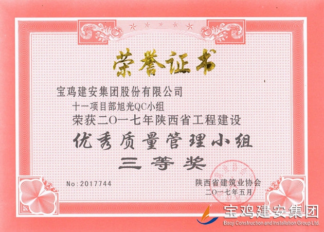 十一項目部旭光QC小組 優(yōu)秀質(zhì)量管理小組